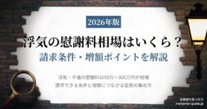 この記事では、不倫の慰謝料相場をケース別に一覧で紹介し、請求の流れ・増額のポイント・W不倫のケースまで徹底的に解説します。浮気の慰謝料全般については浮気の慰謝料相場の記事もあわせてご覧ください。