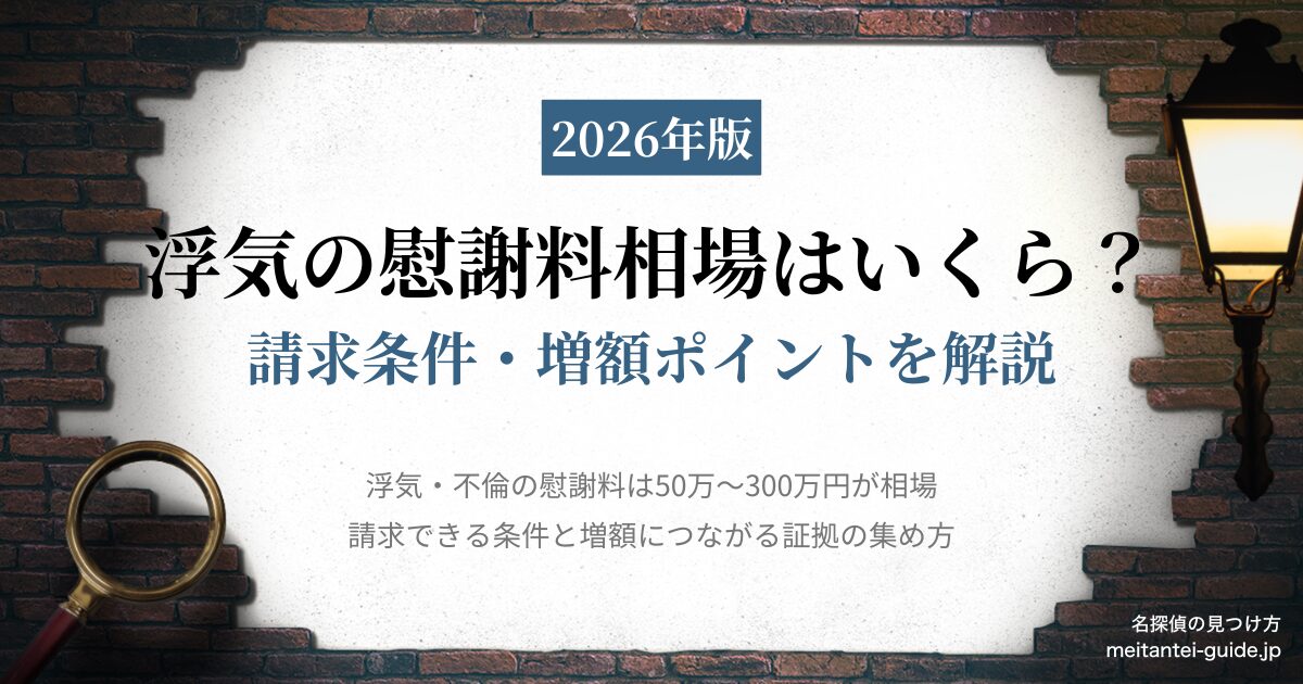 浮気の慰謝料は、離婚する場合で100万〜300万円、離婚しない場合で数十万〜100万円が相場です。ただし証拠の質や婚姻年数によって金額は大きく変動し、探偵の調査報告書があれば増額が認められたケースも少なくありません。